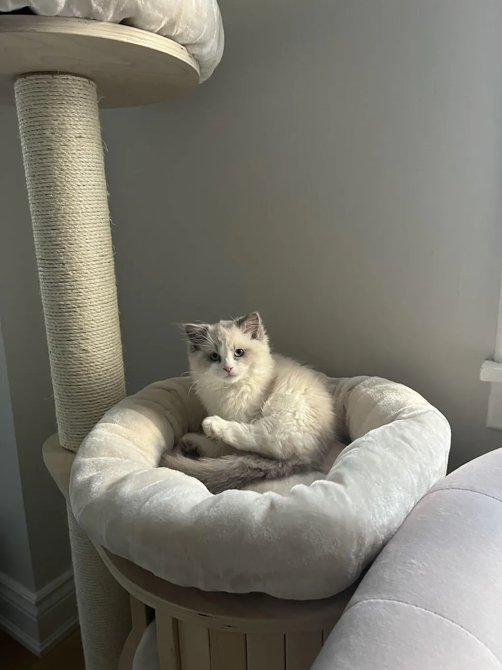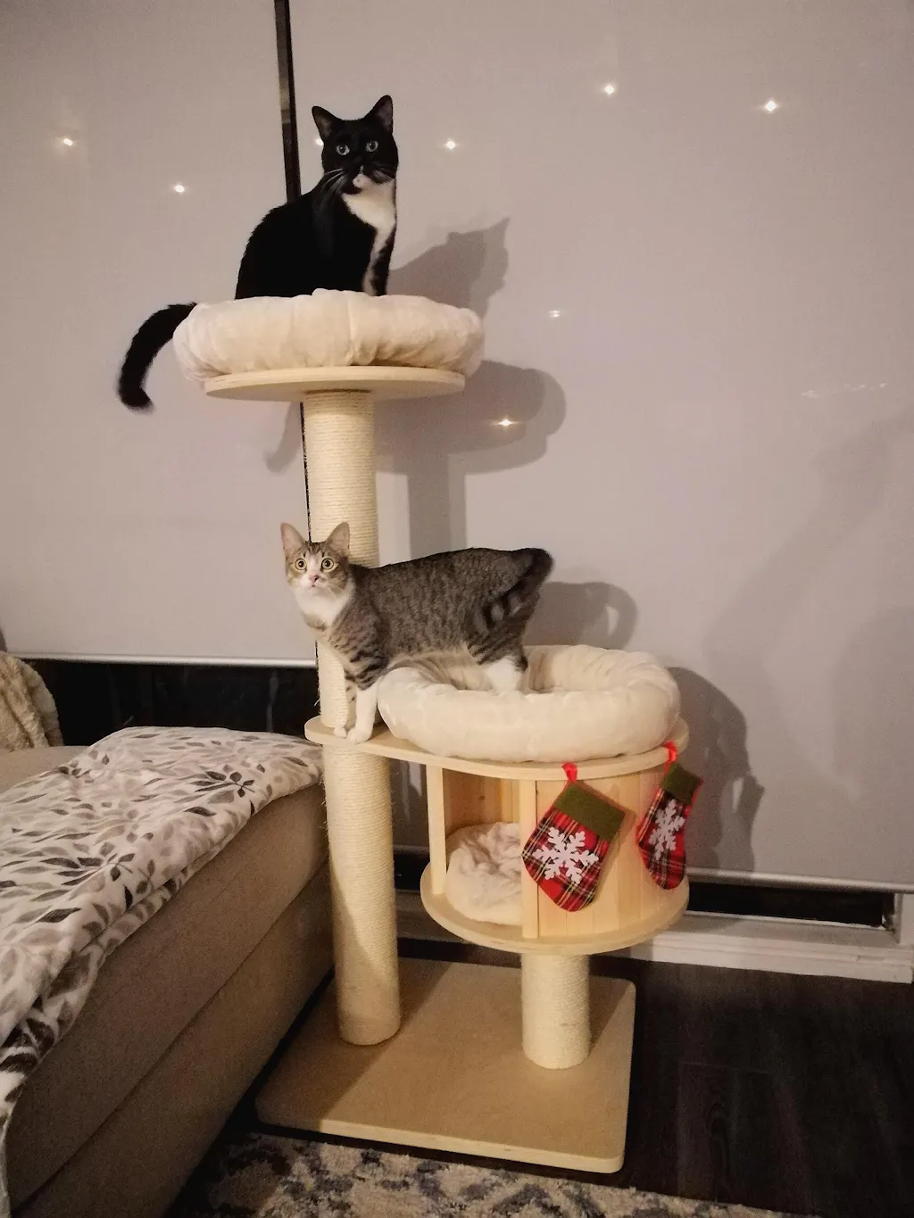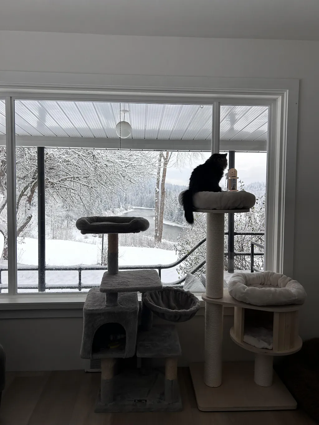 The Ollie is our first plywood cat tree design. It comes in three sizes, making it perfect for any number of cats and any interior. Cats love the comfortable cushions and the cozy condo for hiding out.